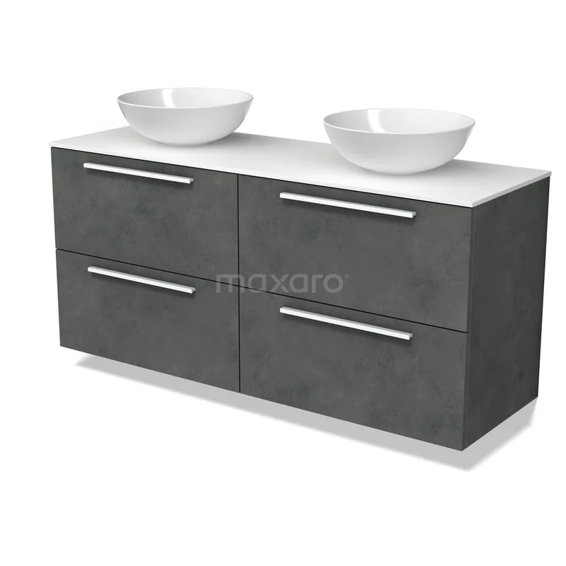 Modulo Plato Badkamermeubel voor waskom | 140 cm Donkergrijs beton Vlak front Solid surface blad 4 lades