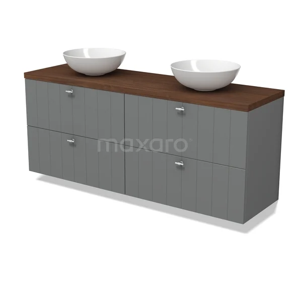 Modulo Plato Badkamermeubel voor waskom | 160 cm Middengrijs Lamel front Walnoot blad 4 lades