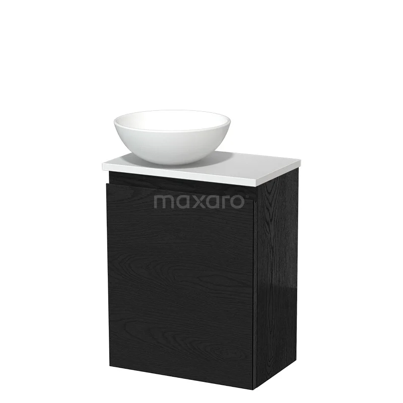 Toiletmeubel met waskom | 41 cm Zwart eiken Greeploos front Mat wit Keramiek waskom Mat wit blad