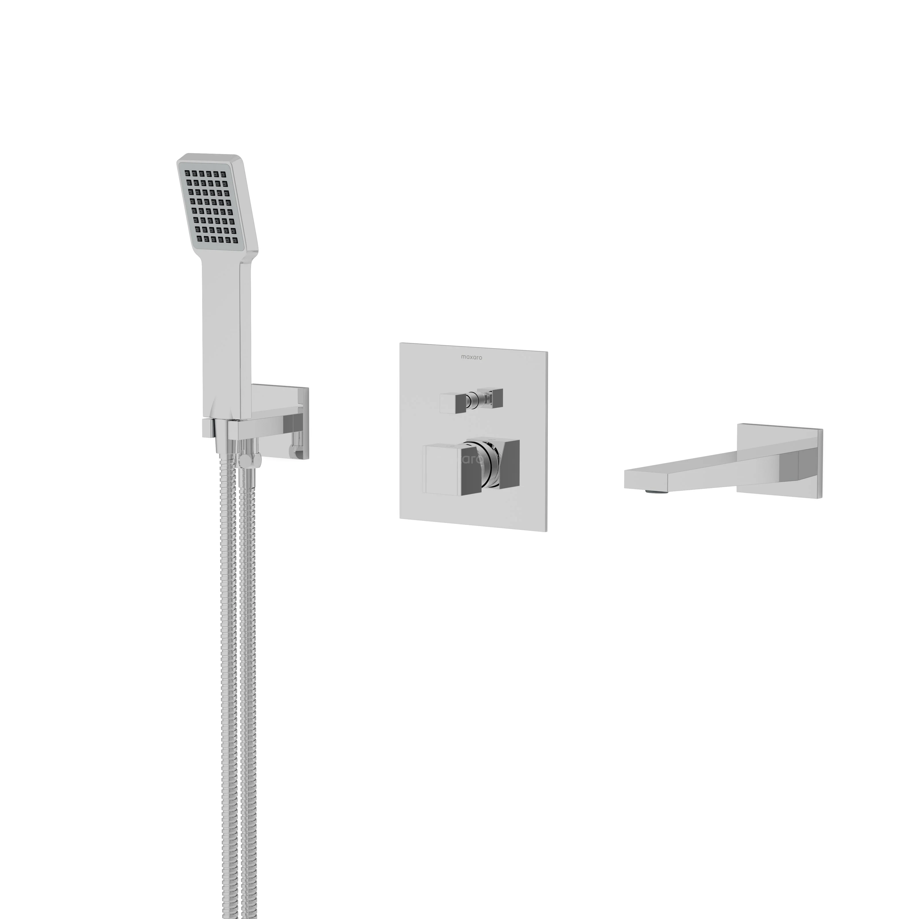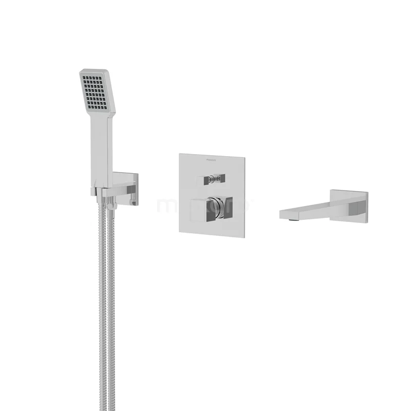 Cubic Unterputz-Wannenbatterie-Set | Chrom Einhebelmischer mit Handbrause 1 Position
