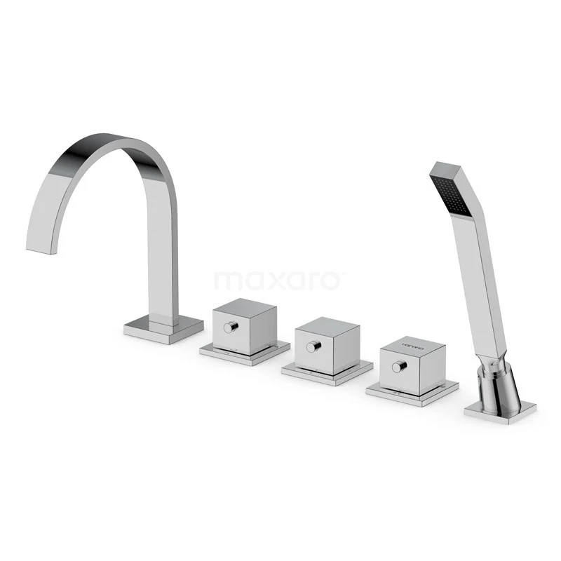 Kubische Badewannenarmatur | Chrom Thermostatisch mit Handbrause | Wannenrandmontage