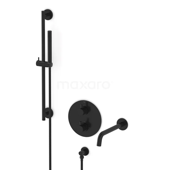 Radius Wanneneinbau-Mischbatterie-Set | Schwarz Thermostatarmatur mit Handbrause 1 Position