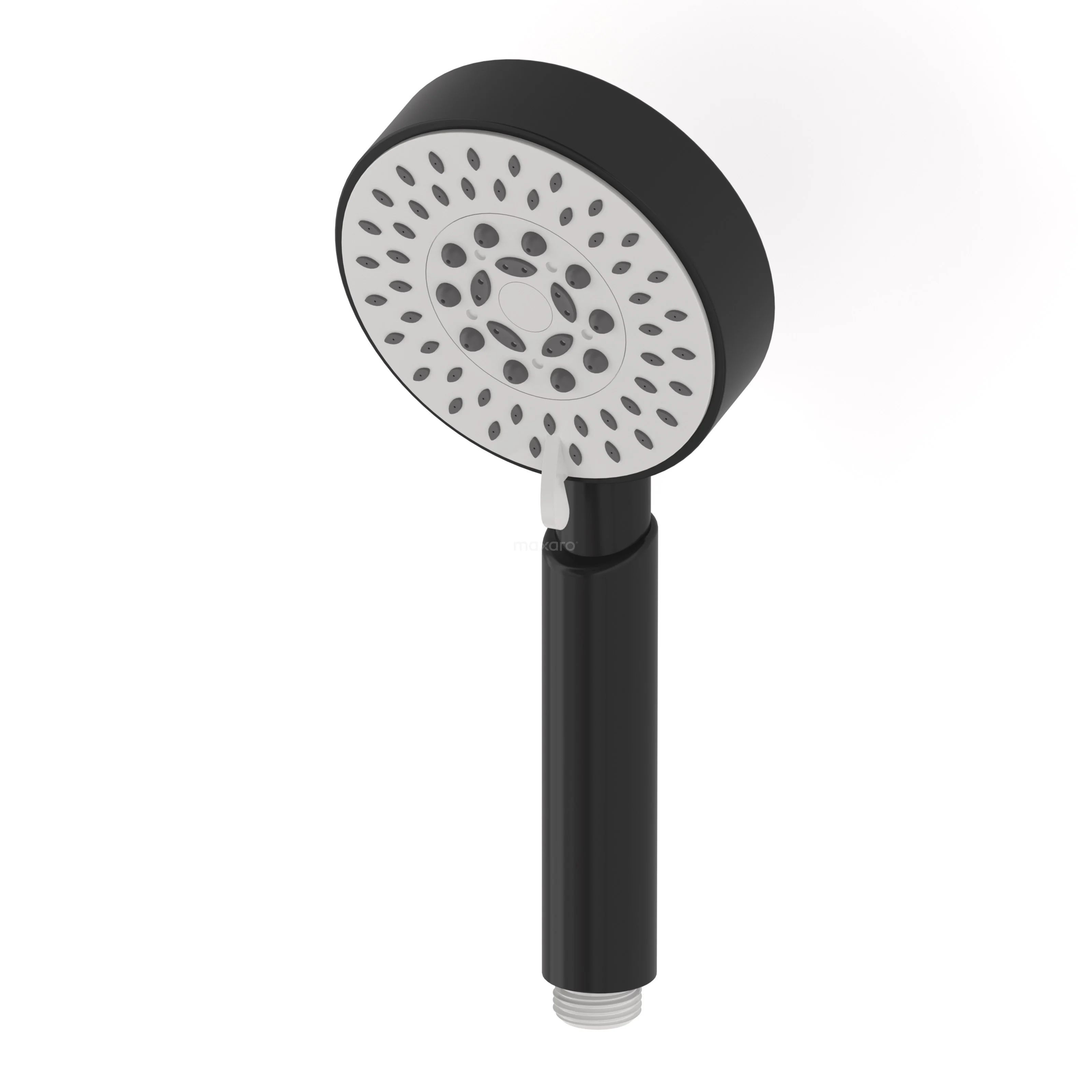 Diese schwarze Handbrause aus der Serie Radius hat ein rundes Design und ist eine stilvolle Ergänzung für Ihr Badezimmer. Sie ist aus Kunststoff gefertigt und verfügt über 5 verschiedene Einstellungen. Hier können Sie zwischen einem Standardstrahl, einem feinen Nebeleffekt oder einer weichen, mittleren und harten Massage wählen. Außerdem ist die Handbrause mit Easy-Clean ausgestattet, mit dem sich die Sprühdüsen leicht von Kalk befreien lassen. Für ein schönes Ganzes kombinieren Sie die Handbrause mit einem passenden Handbrausenhalter von Maxaro.