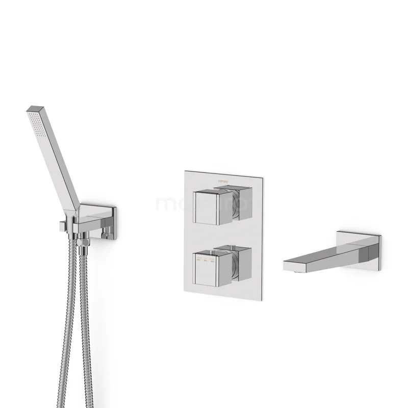 Cubic Badewannenarmatur Unterputz | Chrom Thermostatisch mit Handbrause