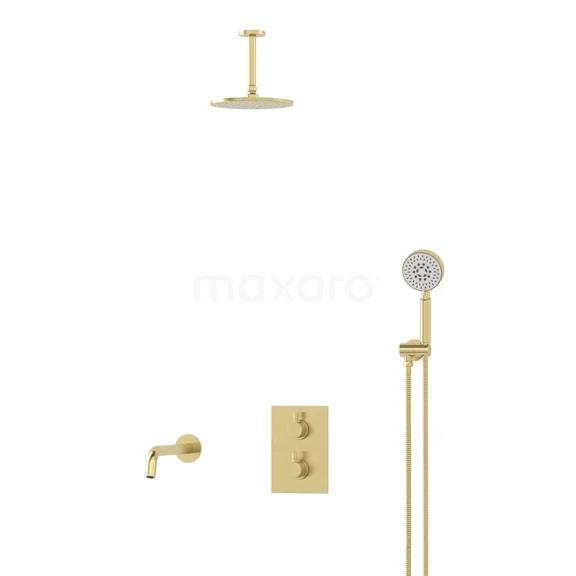 Radius Einbau Badewannenarmatur mit Regendusche | Hellgold | Thermostatisch