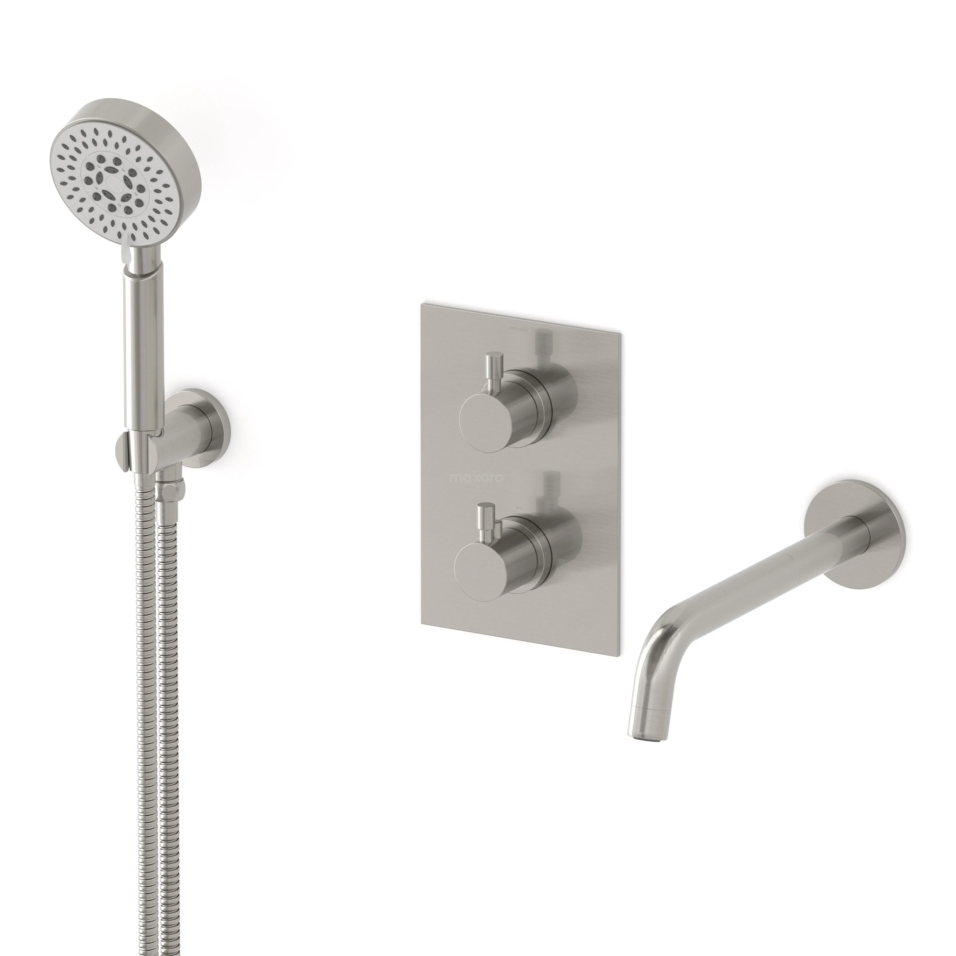 Radius Wanneneinbau-Batterie-Set | Edelstahl Thermostatarmatur mit Handbrause 5 Positionen