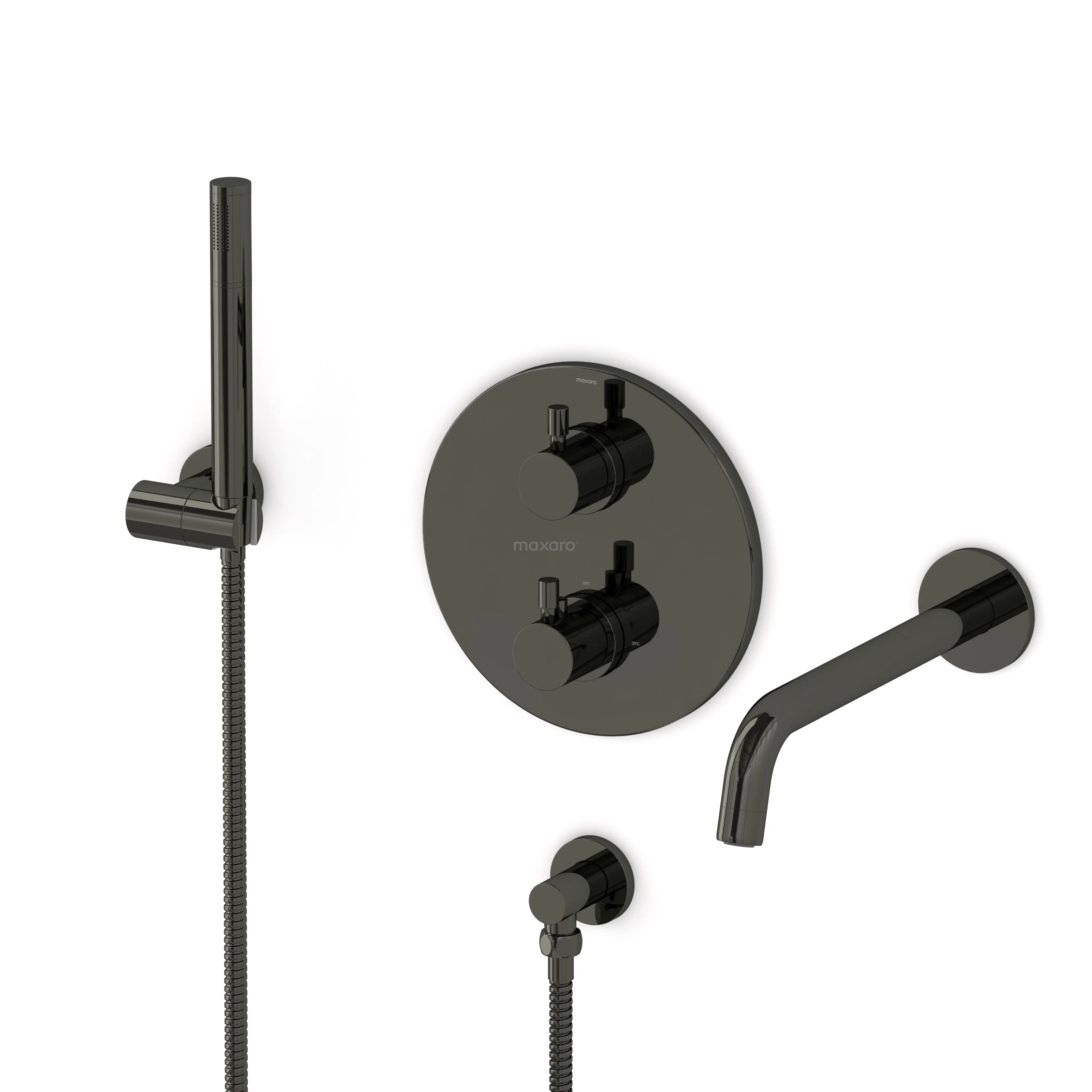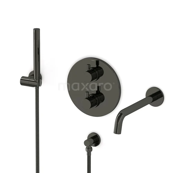 Radius Wanneneinbau-Mischbatterie-Set | Schwarzchrom Thermostatarmatur mit Handbrause 1 Position