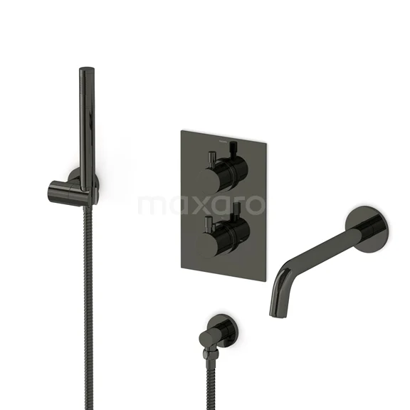 Radius Wanneneinbau-Mischbatterie-Set | Schwarzchrom Thermostatarmatur mit Handbrause 1 Position