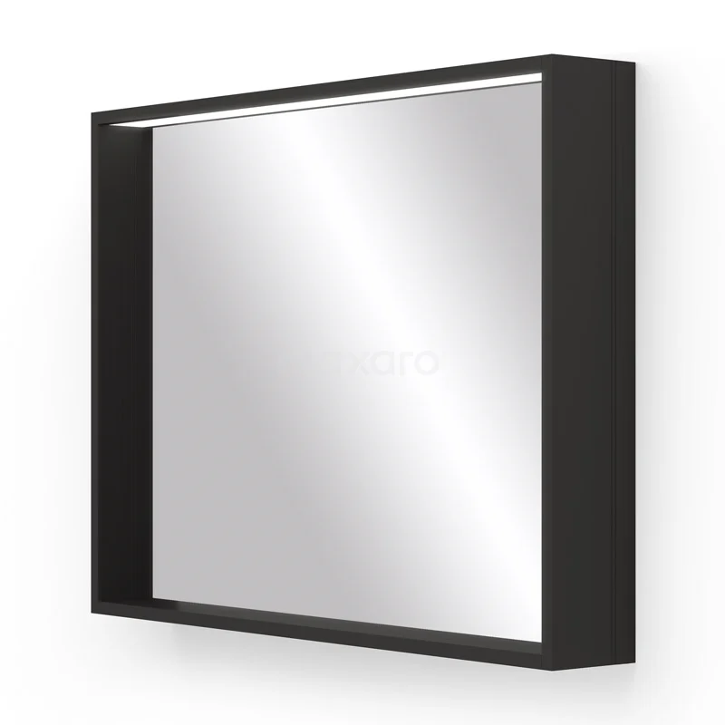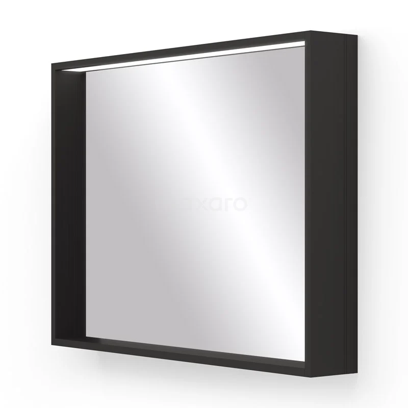Badezimmerspiegel Preto Schwarz mit LED-Beleuchtung 80x60cm