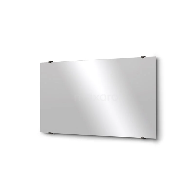 Badezimmerspiegel Solo 100x50cm Spiegelhalter Rund Schwarz Chrom