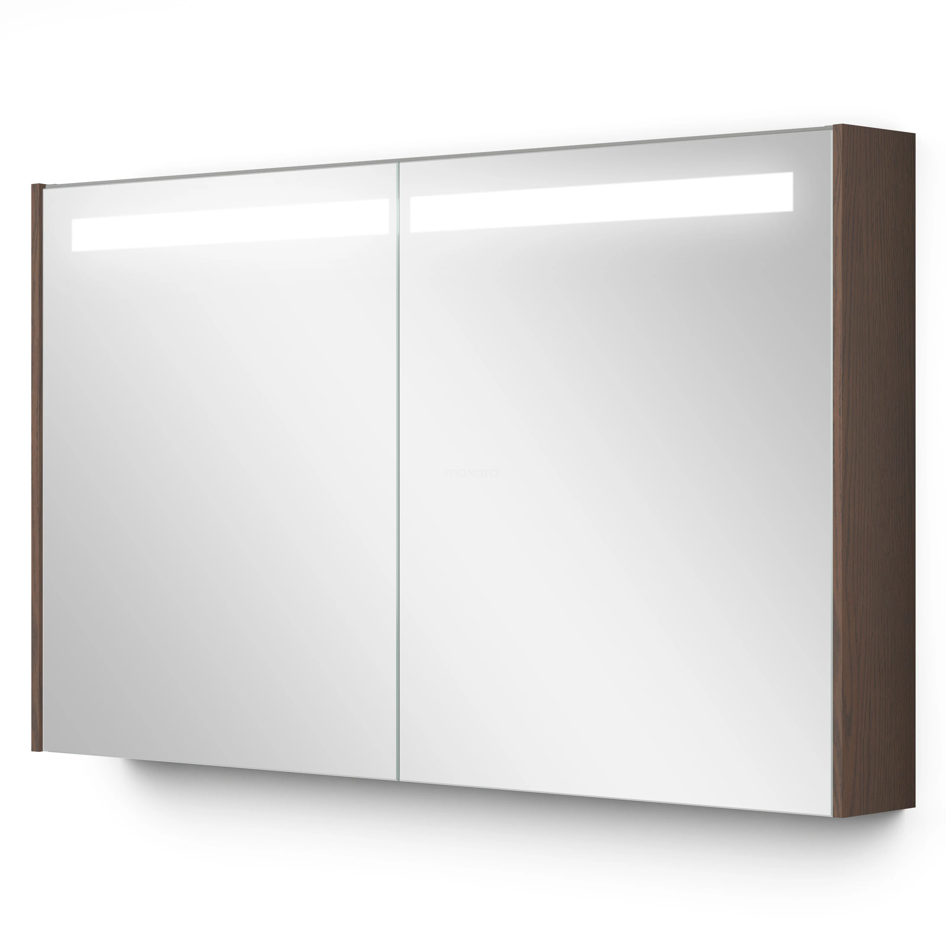 Stylisches Design Dieses stilvolle Stück hat ein rechteckiges Design und ist in kakaohaltiger Eiche ausgeführt. Diese Farbe passt perfekt zu Ihren Badmöbeln und verleiht der Einrichtung einen industriellen Touch. Die Beleuchtung an der Ober- und Unterseite verleiht ihm außerdem ein stimmungsvolles Aussehen. Das Licht kann über einen Ein/Aus-Schalter gesteuert werden. Auch die Farbtemperatur ist einstellbar.