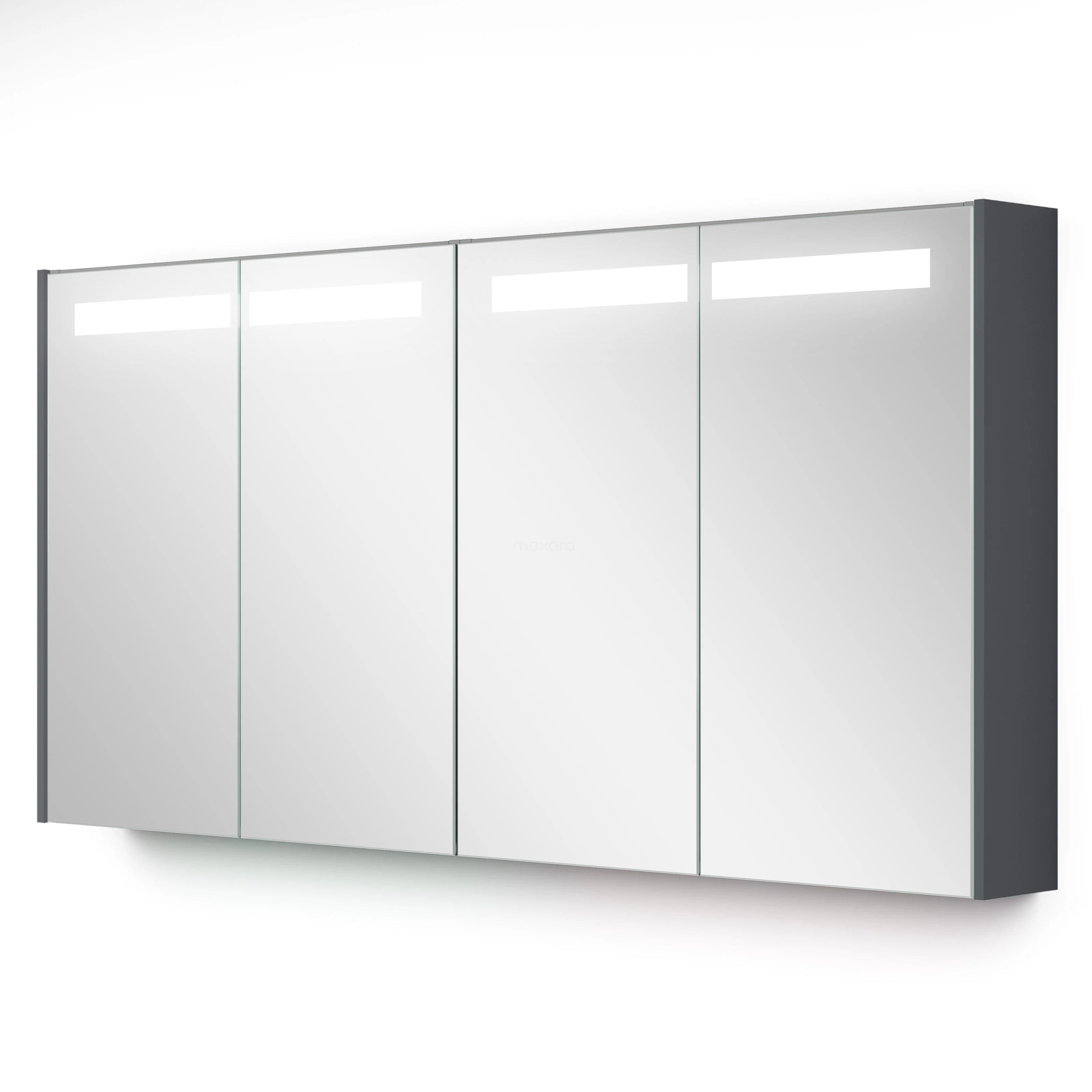 Dieser 140 cm lange Spiegelschrank aus der Serie Serie kombiniert Spiegel und Stauraum. Dank der integrierten LED-Beleuchtung haben Sie immer genügend Licht, wenn Sie sich schminken, rasieren oder die Zähne putzen. So verlaufen Ihre morgendlichen und abendlichen Rituale im Badezimmer ganz reibungslos. Ausgestattet mit 4 Türen, bietet der Schrank genügend Platz, um Ihre Toilettenartikel ordentlich zu verstauen. Außerdem haben die Schranktüren eine Absenkautomatik, die sie leise schließen lässt.