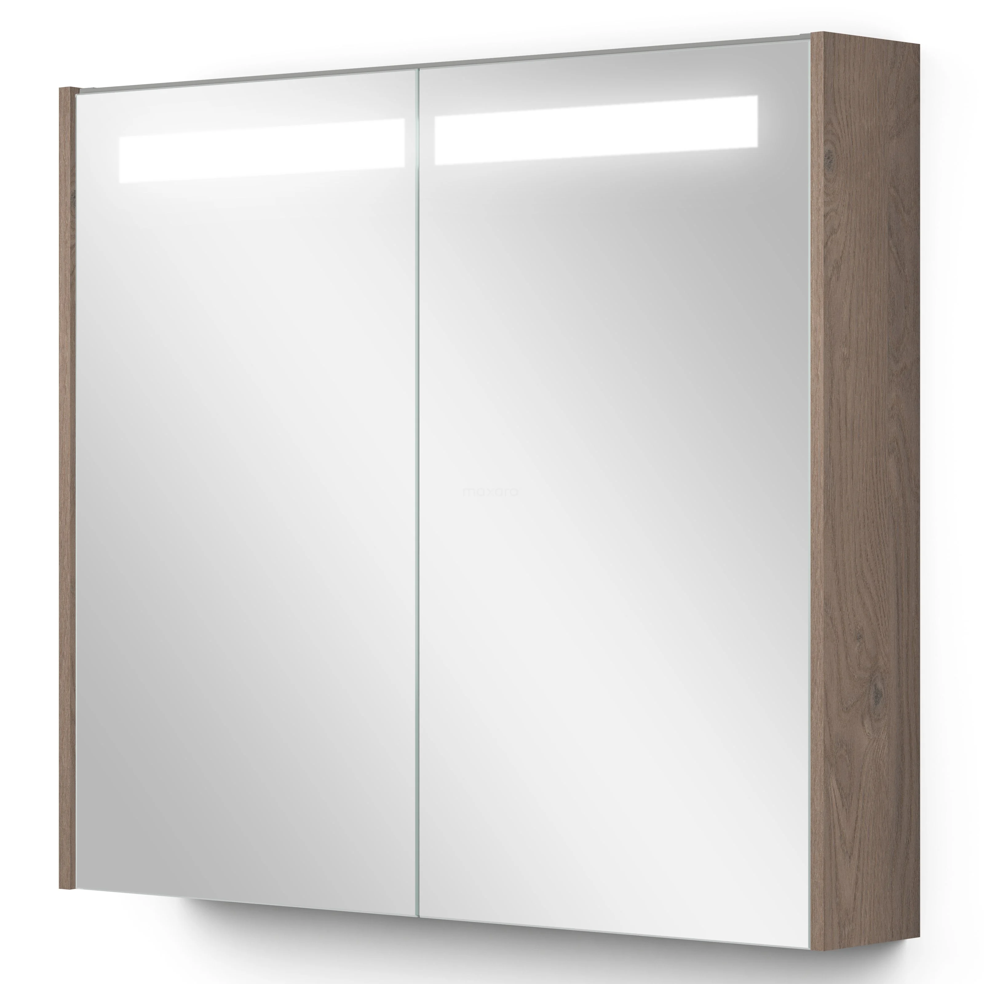 Stylisches Design Dieses stilvolle Stück hat ein rechteckiges Design und ist in mittelbrauner Eiche gehalten. Diese Farbe passt perfekt zu Ihren Badmöbeln und verleiht der Einrichtung eine warme Note. Darüber hinaus verleiht die Beleuchtung ihm ein stimmungsvolles Aussehen. Das Licht kann über einen Ein- und Ausschalter gesteuert werden. Auch die Farbtemperatur ist einstellbar.