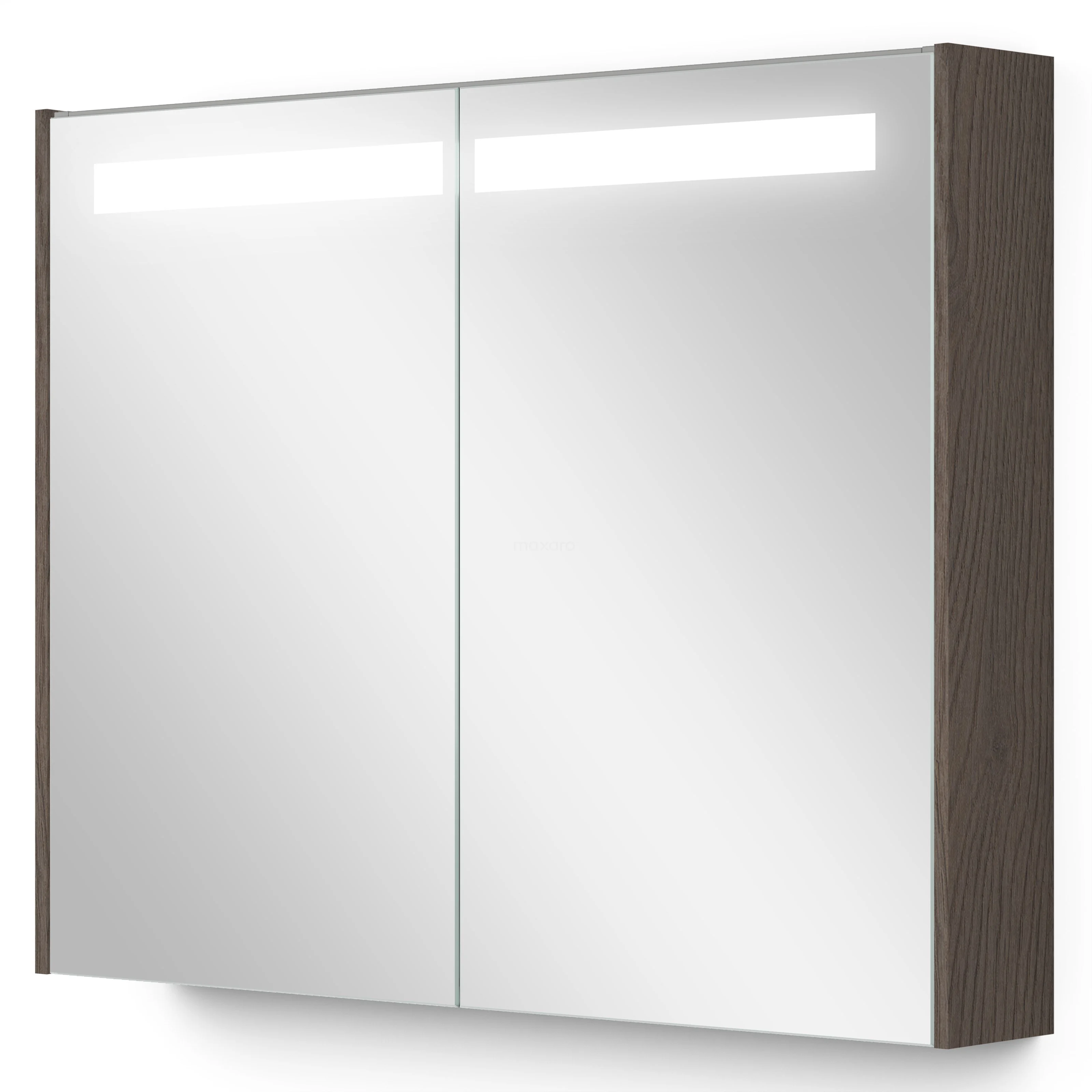 Elegantes Design Dieses stilvolle Stück hat ein rechteckiges Design und ist in dunkelbrauner Eiche gehalten. Diese Farbe passt perfekt zu Ihren Badmöbeln und verleiht der Einrichtung eine warme Note. Darüber hinaus verleiht die Beleuchtung ihm ein stimmungsvolles Aussehen. Das Licht kann über einen Ein- und Ausschalter gesteuert werden. Auch die Farbtemperatur ist einstellbar.