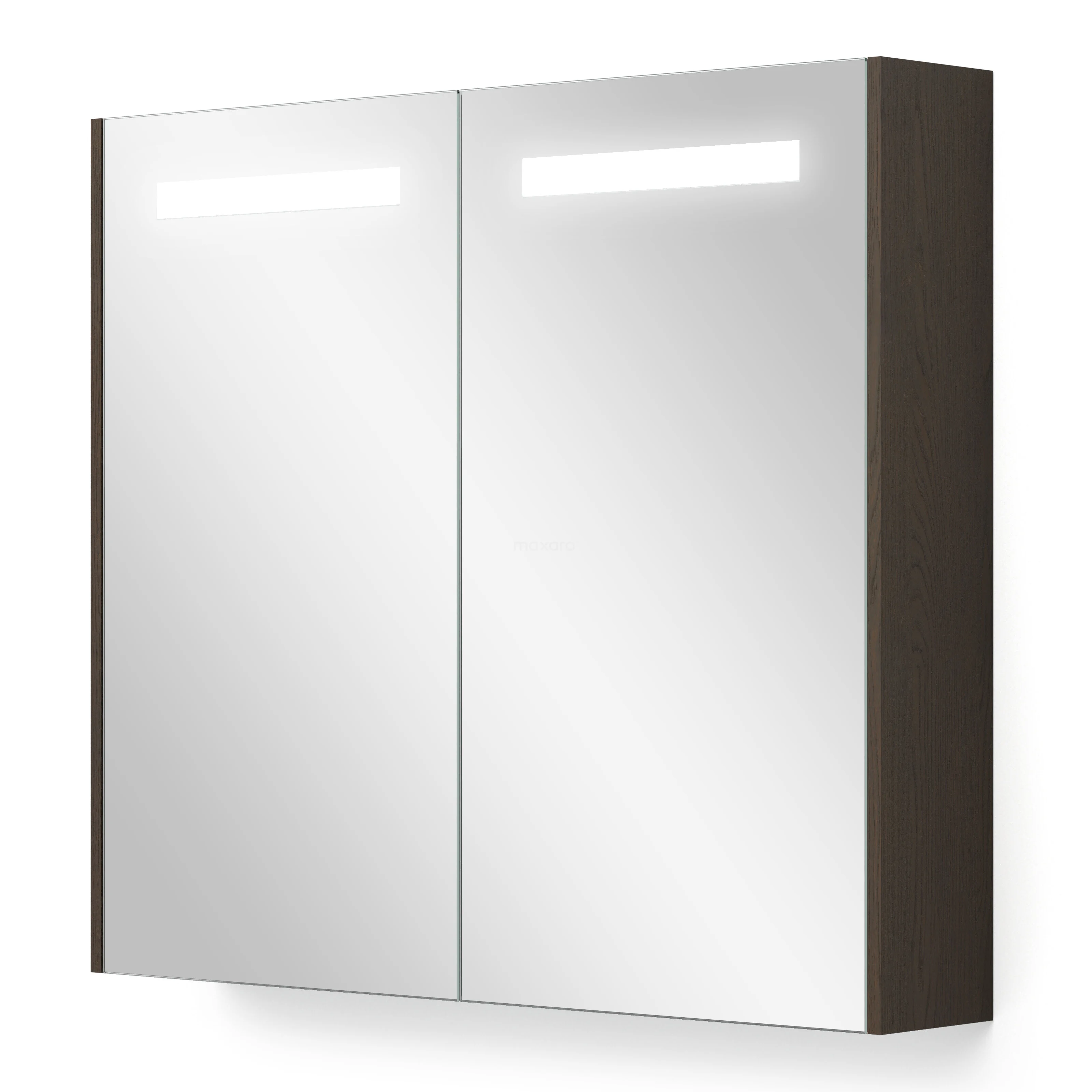 Dieser luxuriöse Spiegelschrank mit 80 cm aus der Modulo-Serie kombiniert einen Spiegel und praktischen Stauraum. Der Schrank ist mit zwei Türen ausgestattet und bietet ausreichend Platz, um all deine Toilettenartikel ordentlich zu verstauen. Die Türchen verfügen über Softclose, wodurch sie geräuschlos schließen, und dank des integrierten Griffs kannst du sie leicht öffnen und schließen. Die Spiegelheizung in den Türen verhindert, dass der Spiegel nach einem warmen Bad oder einer entspannenden Dusche beschlägt.