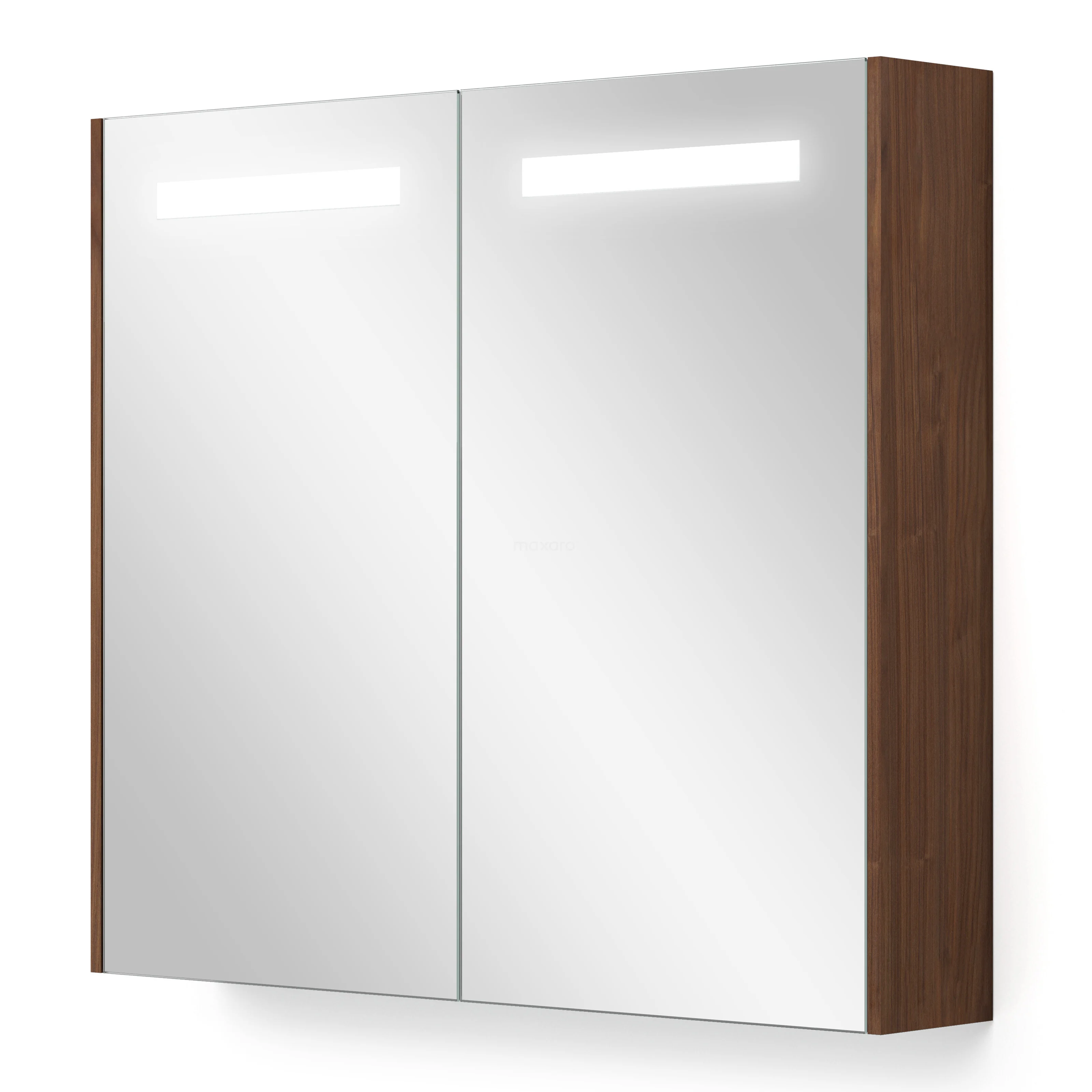 Dieser luxuriöse Spiegelschrank von 80 cm aus der Modulo-Serie kombiniert einen Spiegel und praktischen Stauraum. Der Schrank ist mit zwei Türen ausgestattet und bietet ausreichend Platz, um all deine Toilettenartikel ordentlich zu verstauen. Die Türchen verfügen über Softclose, sodass sie geräuschlos schließen, und dank des integrierten Griffs kannst du sie leicht öffnen und schließen. Die Spiegelheizung in den Türen verhindert, dass der Spiegel nach einem warmen Bad oder einer entspannenden Dusche beschlägt.