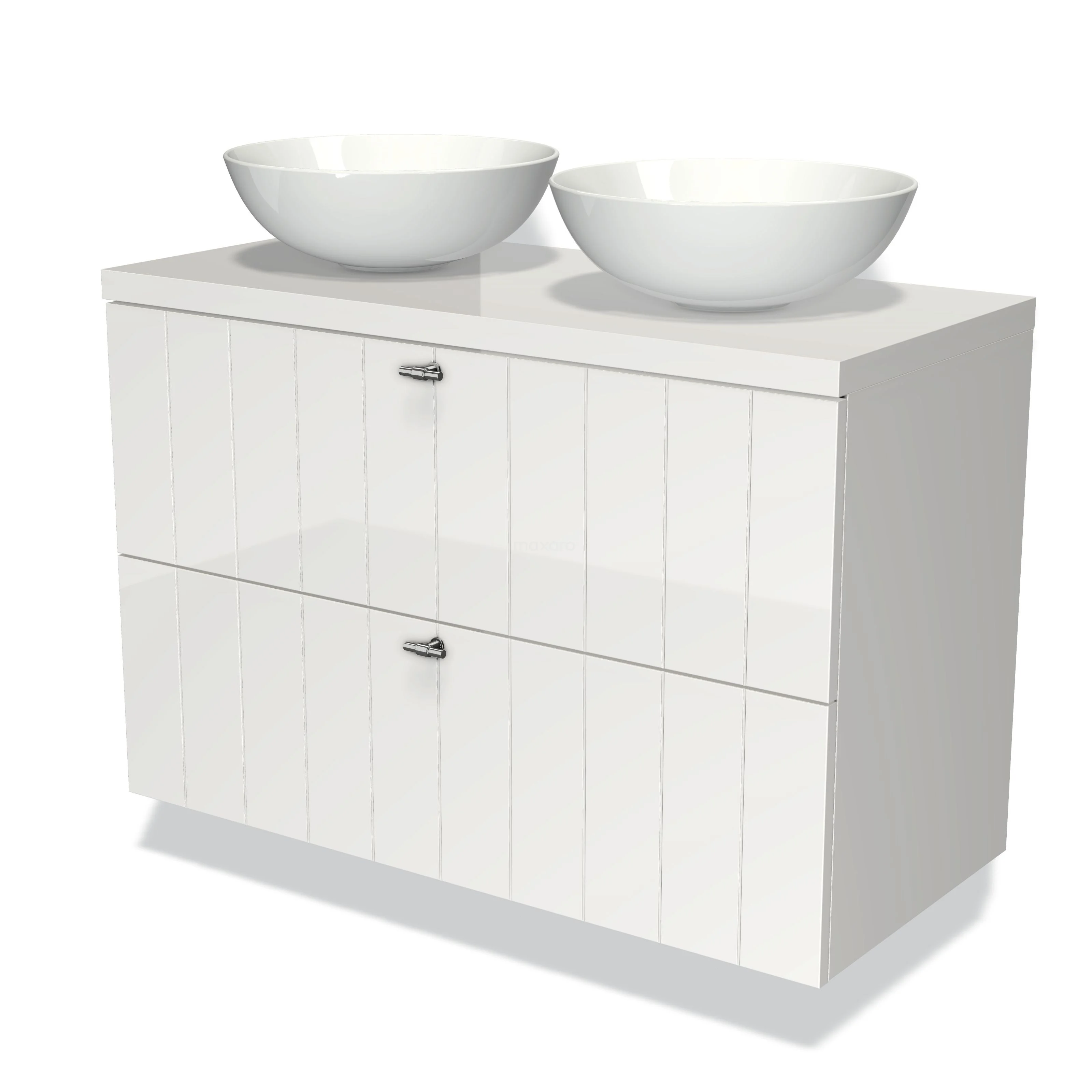 Maxaro hat verschiedene Typen von Unterbaukästen. Bei der Wahl der Schubladen bestimmst du selbst, wie viele du möchtest. Gehst du für zwei nebeneinanderliegende Schubladen oder übereinander? Oder was hältst du von einem breiten Möbel mit vier Schubladen für zusätzlichen Stauraum? Bei den Modulo Serien wählst du auch selbst die Art des Fronts, nämlich flach oder Rahmen. Um den Unterbau komplett zu machen, gibt es verschiedene Haltegriffe. Zum Beispiel quadratische Möbelknöpfe für ein modernes Interieur oder abgerundete Griffe in einem ländlichen oder klassischen Badezimmer.