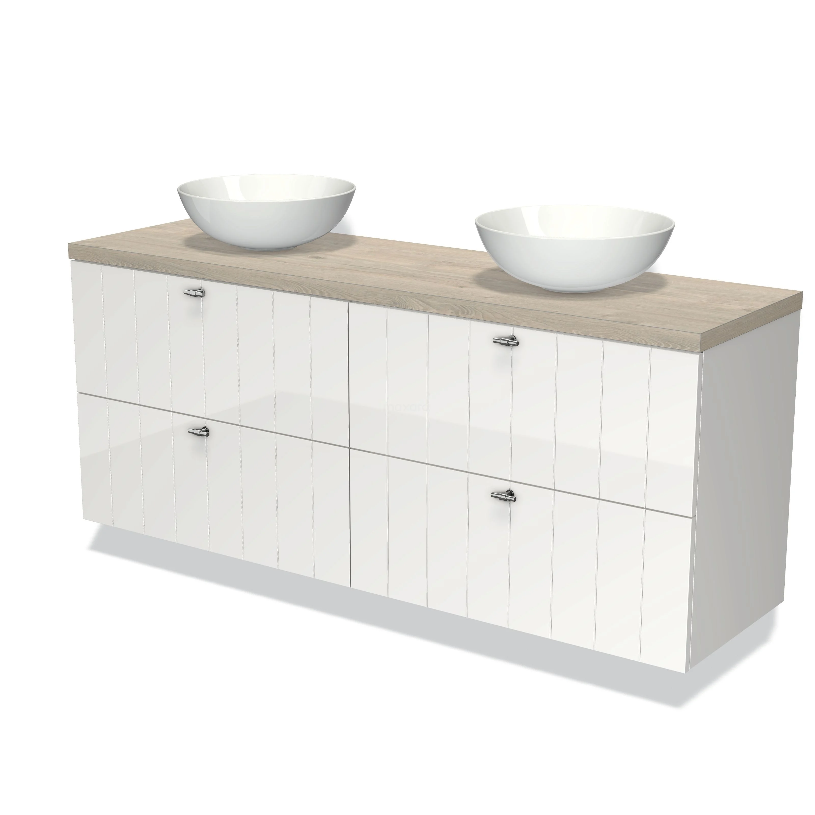 Maxaro hat verschiedene Typen von Unterbaukästen. Bei der Wahl der Schubladen bestimmst du selbst, wie viele du möchtest. Gehst du für zwei nebeneinanderliegende Schubladen oder übereinander? Oder was hältst du von einem breiten Möbel mit vier Schubladen für zusätzlichen Stauraum? Bei den Modulo Serien wählst du auch selbst die Art des Fronts, nämlich flach oder Rahmen. Um den Unterbau komplett zu machen, gibt es verschiedene Haltegriffe. Zum Beispiel quadratische Möbelknöpfe für ein modernes Interieur oder abgerundete Griffe in einem ländlichen oder klassischen Badezimmer.