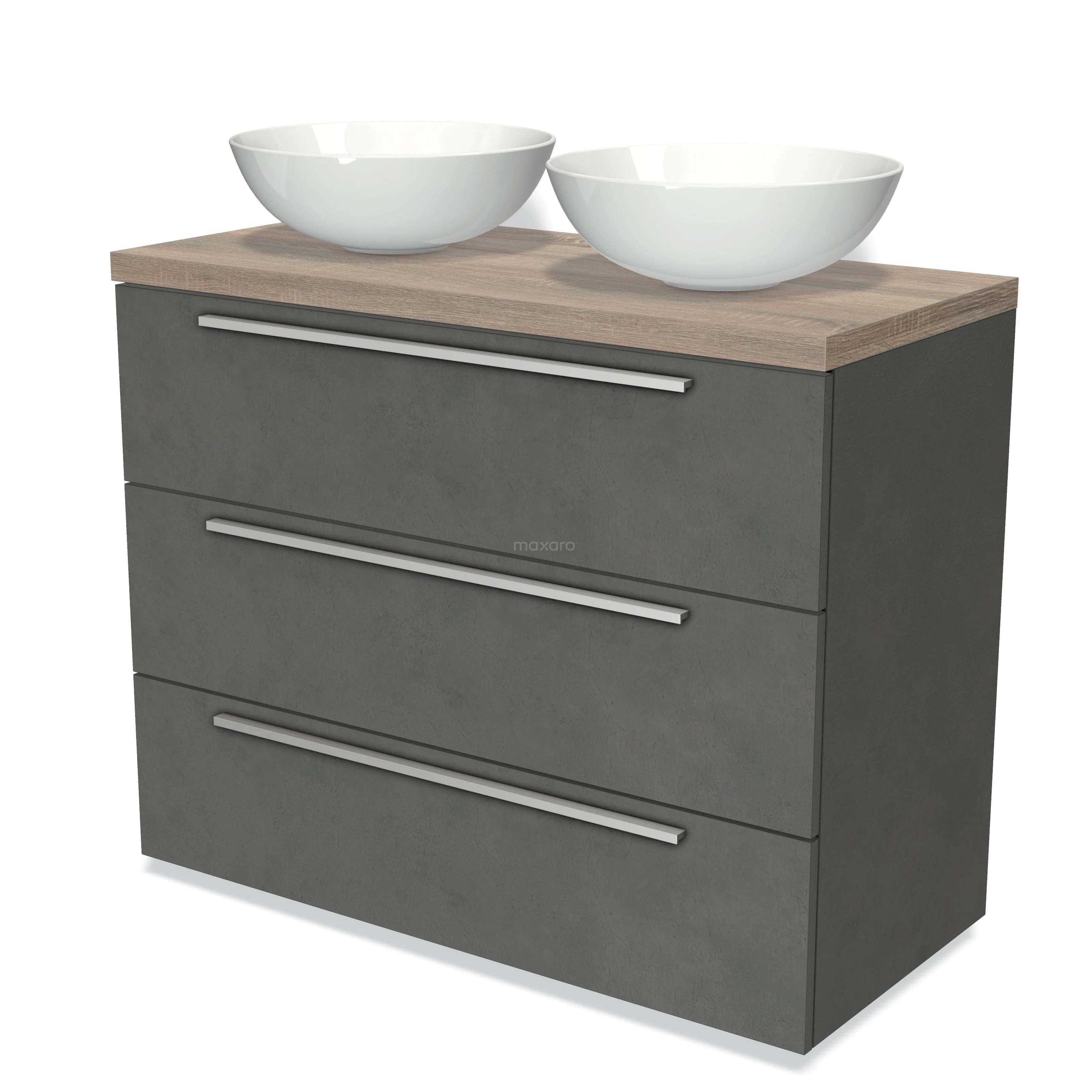Maxaro hat verschiedene Typen von Unterbaukästen. Bei der Wahl der Schubladen bestimmst du selbst, wie viele du möchtest. Gehst du für zwei nebeneinanderliegende Schubladen oder übereinander? Oder was hältst du von einem breiten Möbel mit vier Schubladen für zusätzlichen Stauraum? Bei den Modulo Serien wählst du auch selbst die Art des Fronts, nämlich flach oder Rahmen. Um den Unterbau komplett zu machen, gibt es verschiedene Haltegriffe. Zum Beispiel quadratische Möbelknöpfe für ein modernes Interieur oder abgerundete Griffe in einem ländlichen oder klassischen Badezimmer.