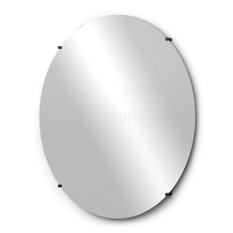 Ovale Badezimmer Spiegel ohne Rahmen, modernes Design, Klarglas, geeignet für minimalistische Badezimmerinterieurs.