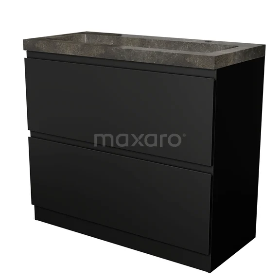 Badmöbel 100cm Modulo Matt Schwarz 2 hohe Schubladen stehende Schubladen griffloses Waschbecken Naturstein Blau