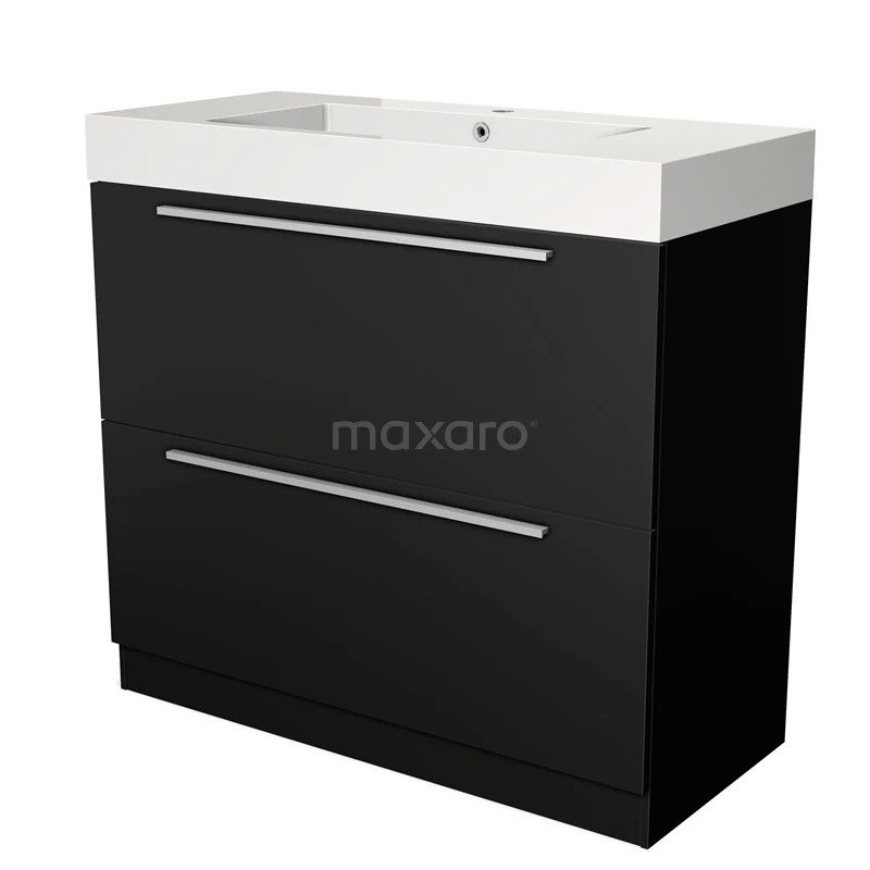 Badmöbel 100cm Modulo Matt Schwarz 2 hohe Schubladen Stehendes Waschbecken Mineralguss Marmor