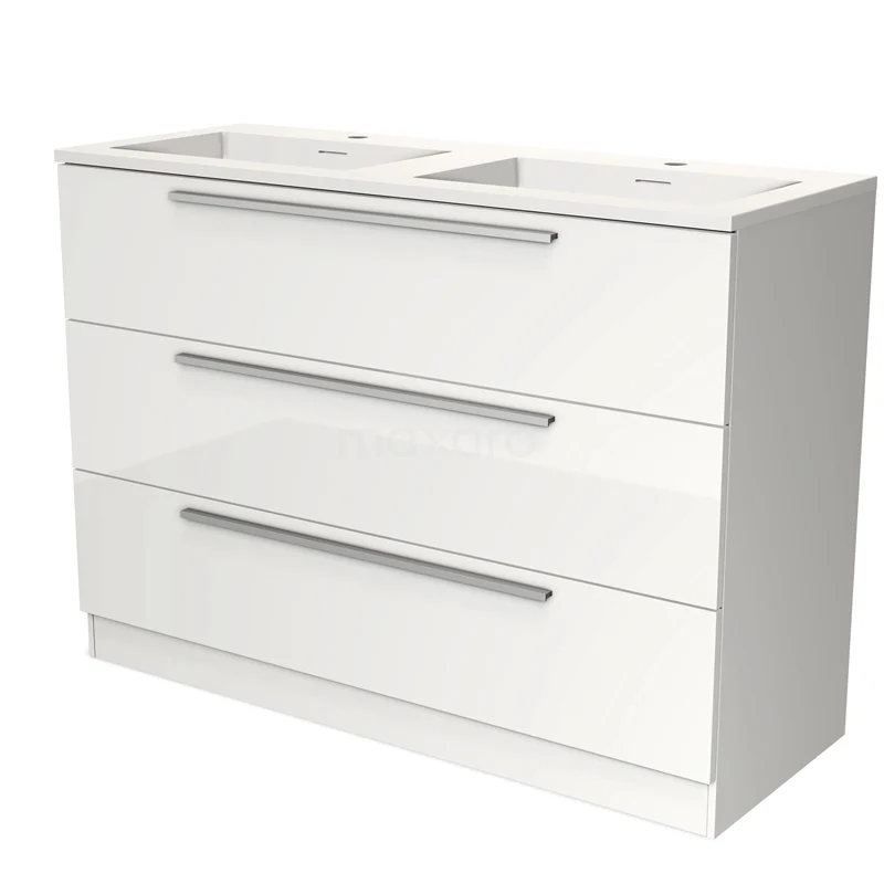 Badmöbel 120cm Modulo Hochglanz Weiß 3 Schubladen Stehendes Waschbecken Solid Surface