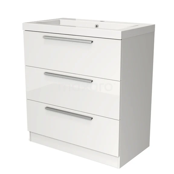 Badmöbel 80cm Modulo Hochglanz Weiß 3 Schubladen stehendes Waschbecken Mineralguss