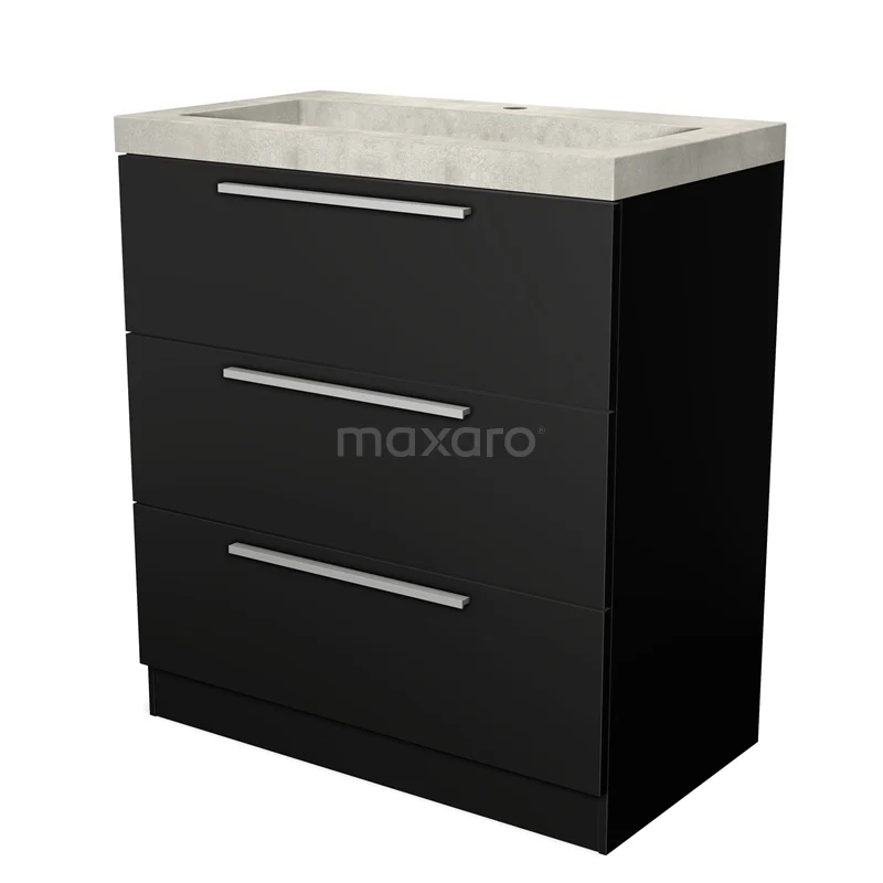 Badmöbel 80cm Modulo Matt Schwarz 3 Schubladen Stehend Flaches Waschbecken Beton