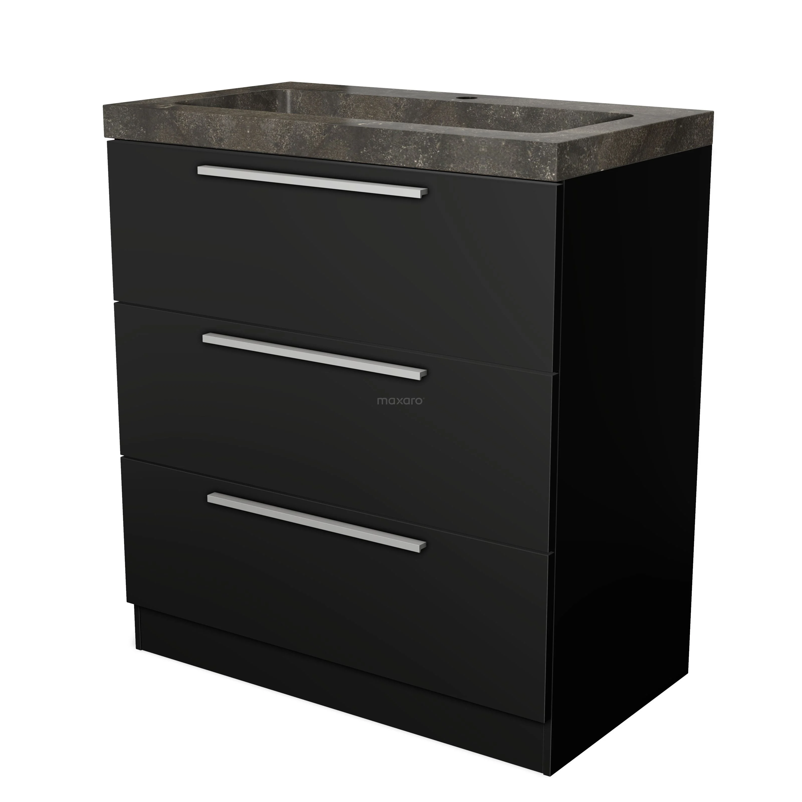 Badmöbel 80cm Modulo Matt Schwarz 3 Schubladen Stehendes Schubladen Waschbecken Naturstein Blue Stone