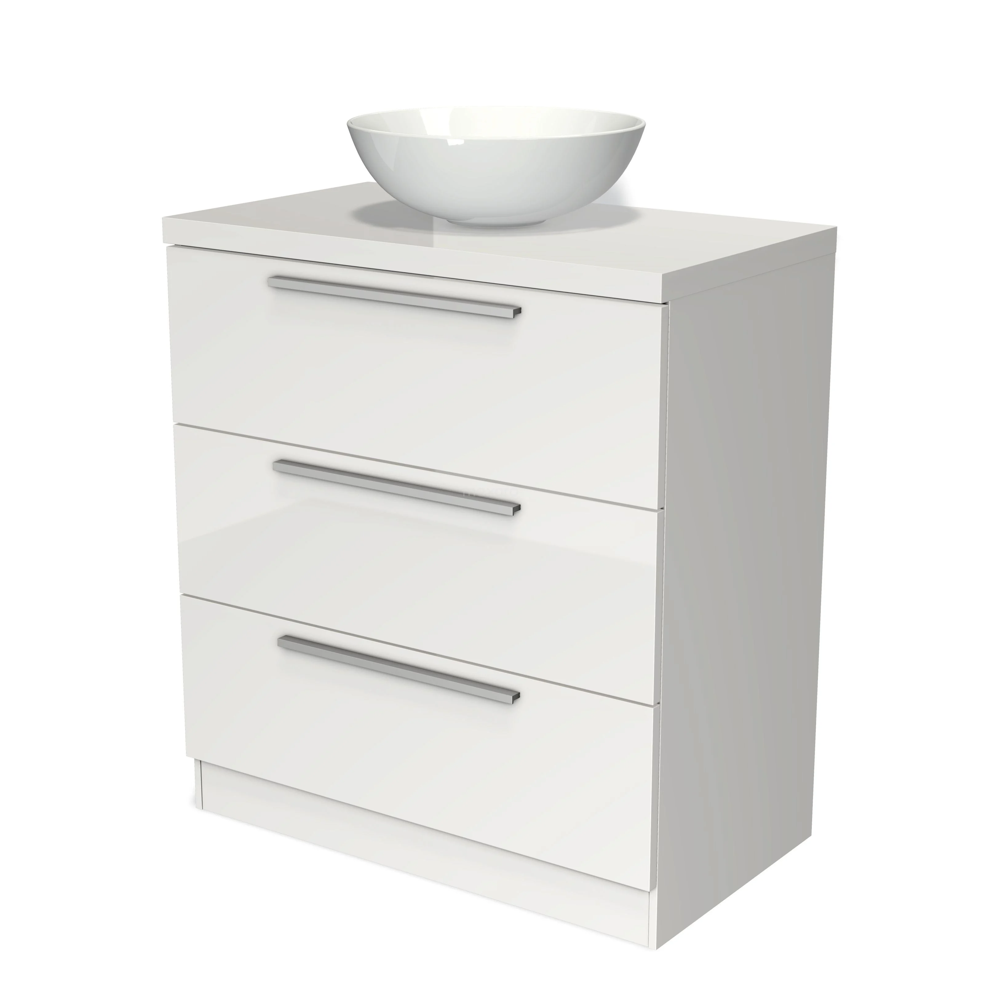 Badmöbel für Waschtischunterschrank mit Konsole 80cm Modulo Plato Hochglanz Weiß 3 Schubladen Stehend Flach