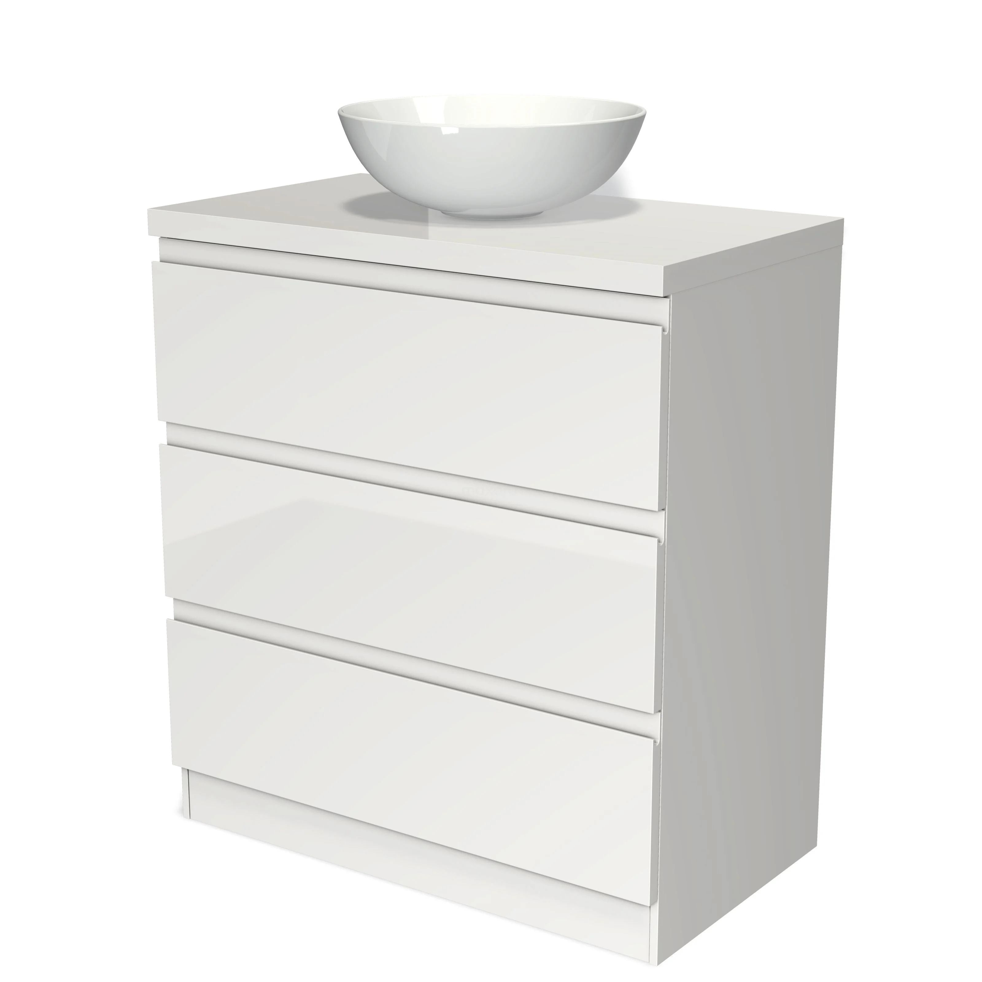 Badmöbel für Waschtischunterschrank mit Konsole 80cm Modulo Plato Hochglanz Weiß 3 Schubladen stehend grifflos