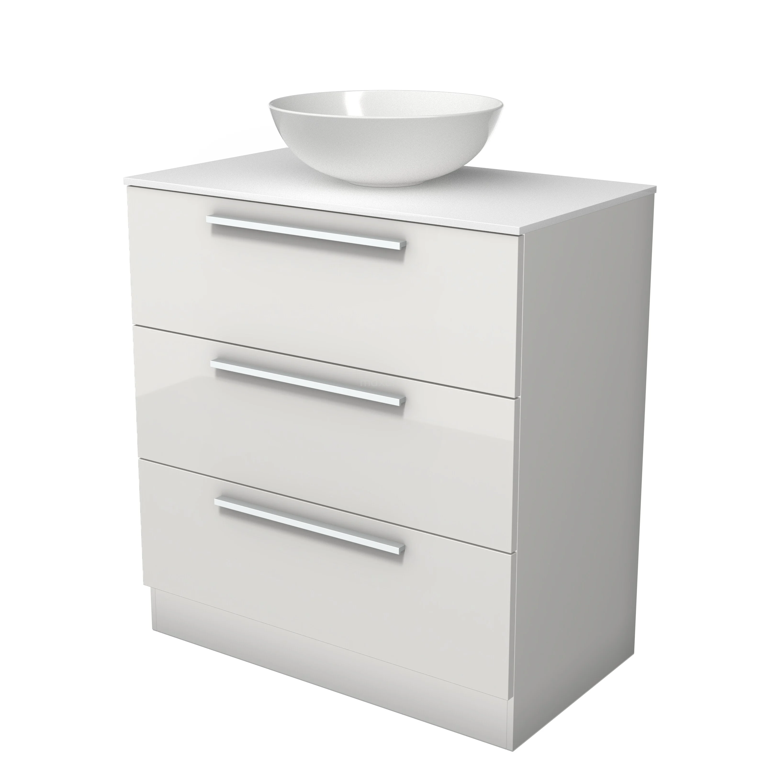 Badmöbel 80cm + 3 Haltegriffe + Aufsatzwaschbecken