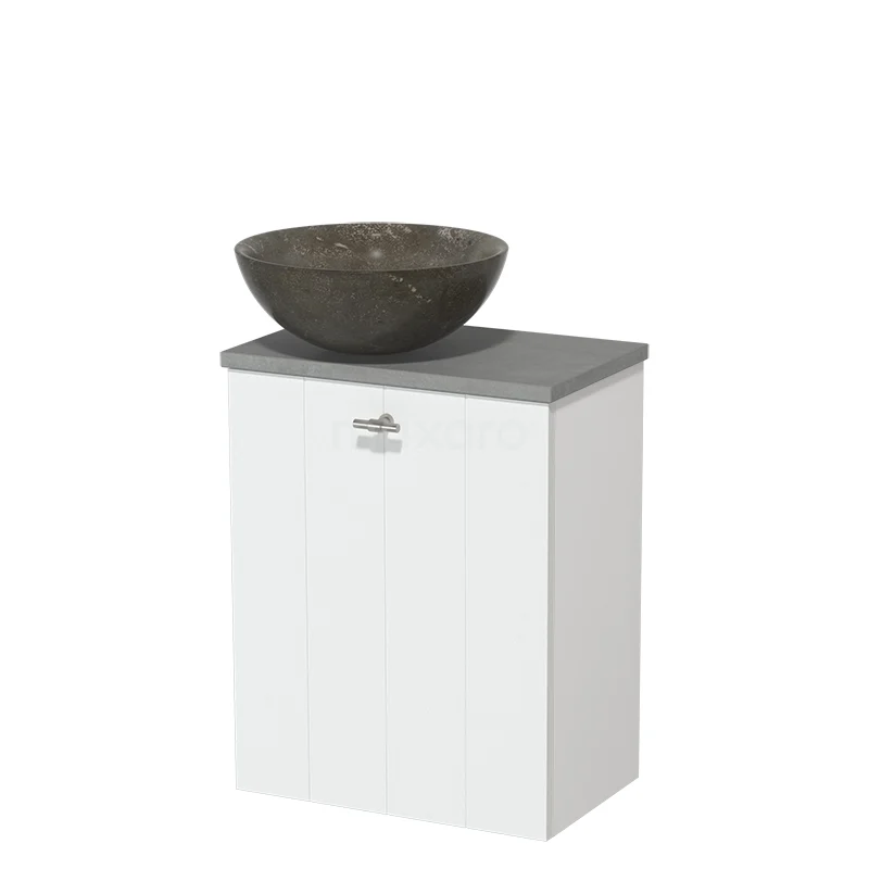 | 41 cm Matt Weiß Lamellenfront Blaustein Naturstein-WC-Möbel Hellgrauer Beton Platte