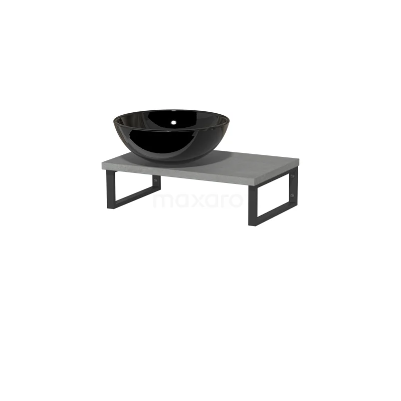 Stilvolles Design Dank seines schönen Designs ist das Möbel ein Blickfang im WC-Raum. Die Waschtischplatte ist aus hellgrauem Beton gefertigt und wird mit einem Aufsatzwaschbecken kombiniert. Das stilvolle Aufsatzwaschbecken ist aus Keramik mit einer hochglänzenden Oberfläche in Schwarz gefertigt.