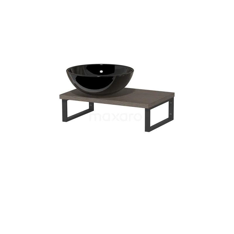 Modulo Pico Waschtischplatte mit Aufsatzwaschbecken | 41 cm Dunkelbraune Eiche Hochglanz Schwarz Keramik