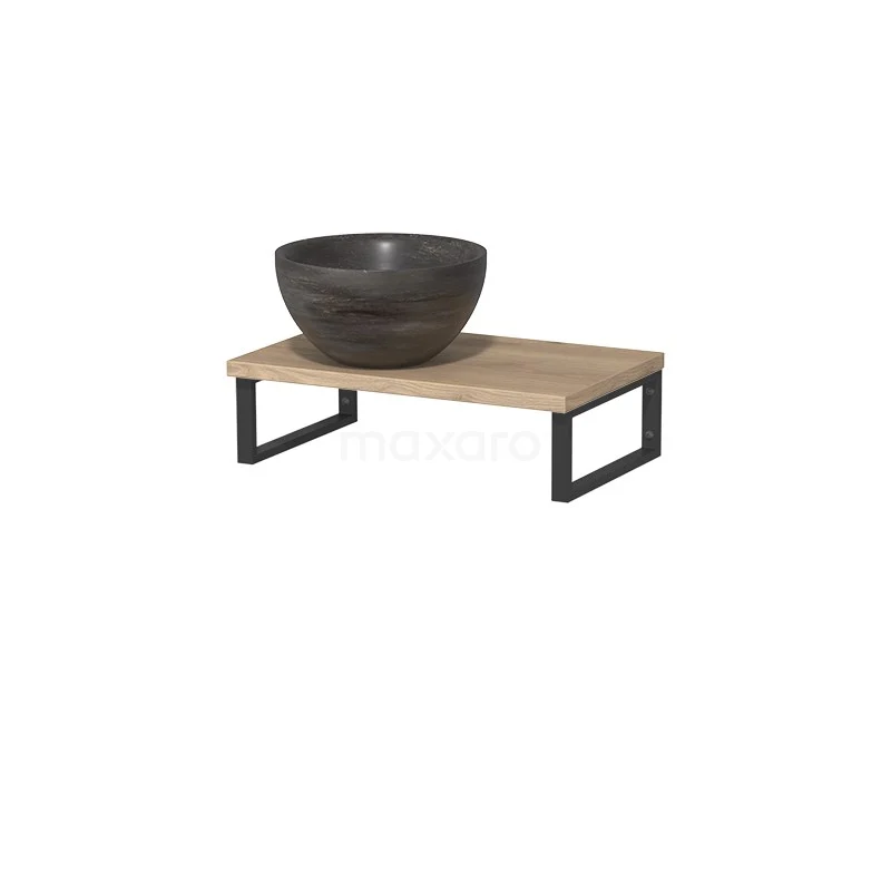 Stilvolles Design Dank seines schönen Designs ist das Möbel ein Blickfang im WC-Raum. Die Waschtischplatte ist in hellbrauner Eiche gehalten und wird mit einem Aufsatzwaschbecken kombiniert. Das stilvolle Aufsatzwaschbecken ist aus Naturstein mit einer Blausteinoberfläche gefertigt.