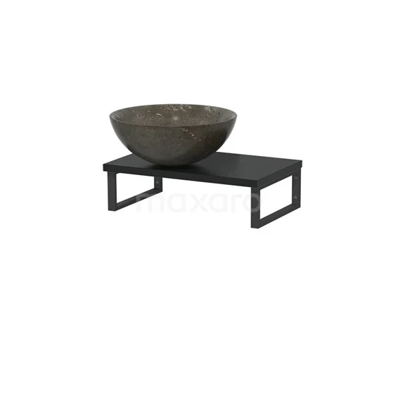 Stylisches Design Dank seines schönen Designs ist das Möbel ein Blickfang im WC-Raum. Die Waschtischplatte hat eine matt schwarze Oberfläche und ist mit einem Aufsatzwaschbecken kombiniert. Das stilvolle Aufsatzwaschbecken ist aus Naturstein in Blausteinoptik gefertigt.