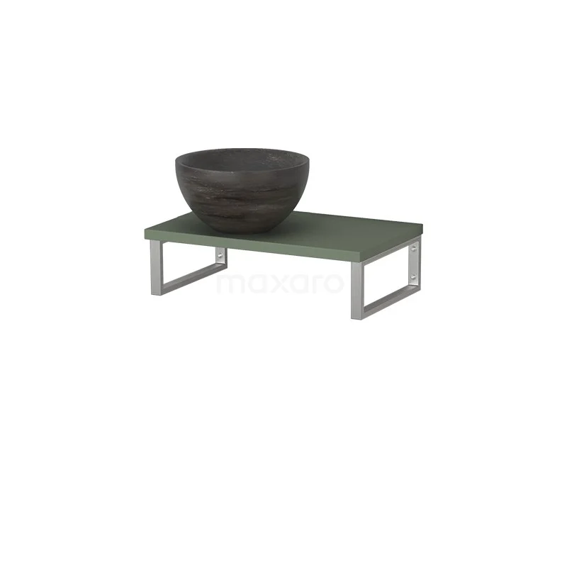 Stylisches Design Dank seines schönen Designs ist das Möbel ein Blickfang im WC-Raum. Die Waschtischplatte ist in Salbeigrün gehalten und wird mit einem Aufsatzwaschbecken kombiniert. Das stilvolle Aufsatzwaschbecken ist aus Naturstein in Blausteinoptik gefertigt.