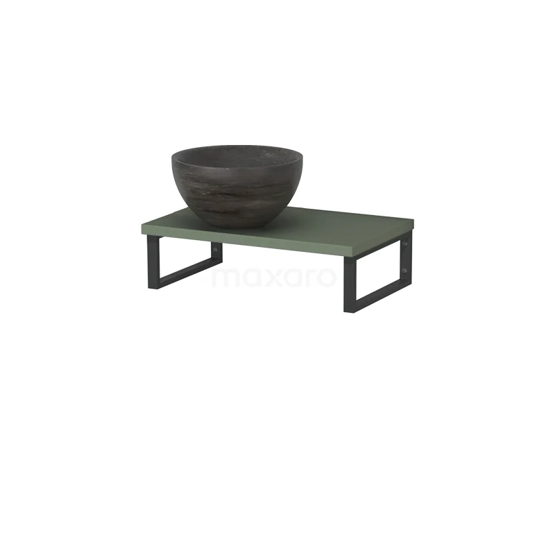 Stylisches Design Dank seines schönen Designs ist das Möbel ein Blickfang im WC-Raum. Die Waschtischplatte ist in Salbeigrün gehalten und wird mit einem Aufsatzwaschbecken kombiniert. Das stilvolle Aufsatzwaschbecken ist aus Naturstein in Blausteinoptik gefertigt.