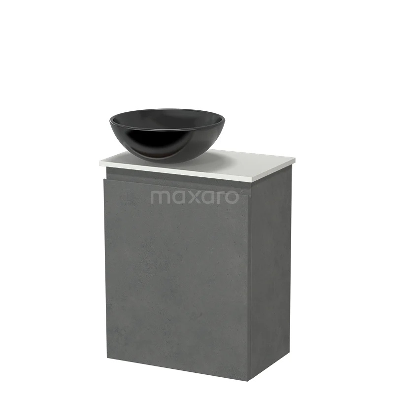 Modulo Pico WC-Möbel mit Aufsatzwaschbecken | 41 cm Dunkelgrauer Beton Grifflose Front Keramik-Aufsatzwaschbecken Solid Surface Waschtischplatte