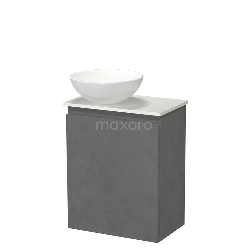 Modulo Pico WC-Möbel mit Aufsatzwaschbecken | 41 cm Dunkelgrauer Beton Grifflose Front Keramik-Aufsatzwaschbecken Solid Surface Waschtischplatte