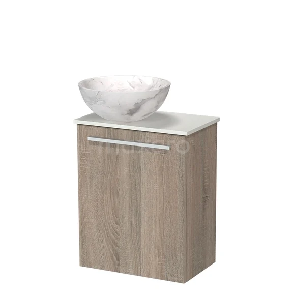 Modulo Pico WC-Möbel mit Aufsatzwaschbecken | 41 cm Eiche glatte Front Naturstein-Aufsatzwaschbecken Solid Surface Waschtischplatte