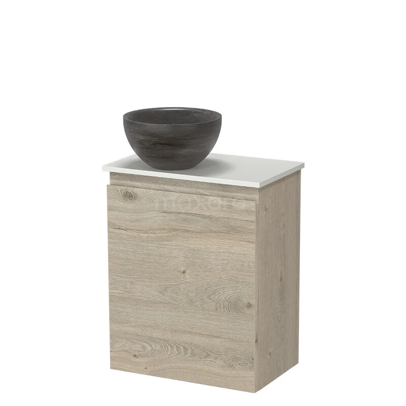 Modulo Pico WC-Möbel mit Aufsatzwaschbecken | 41 cm Hellgraue Eiche Grifflose Front Aufsatzwaschbecken aus Naturstein Solid Surface Waschbeckenplatte
