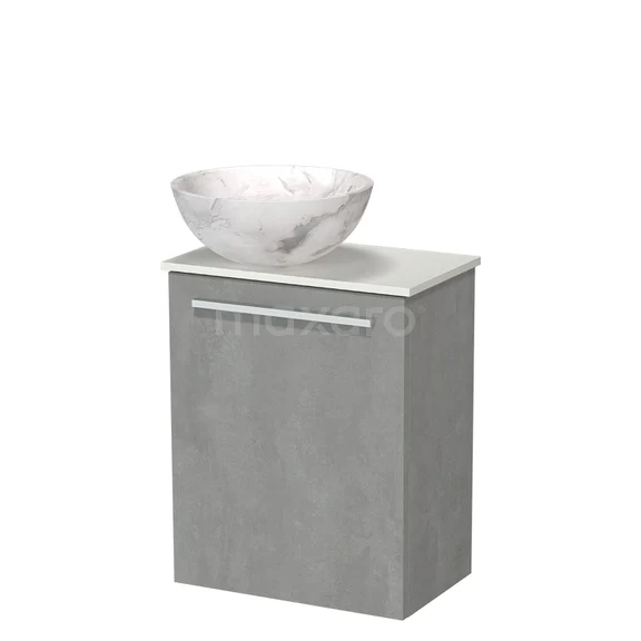 Modulo Pico WC-Möbel mit Aufsatzwaschbecken | 41 cm Hellgrauer Beton Glatte Front Naturstein-Aufsatzwaschbecken Solid Surface Waschtischplatte