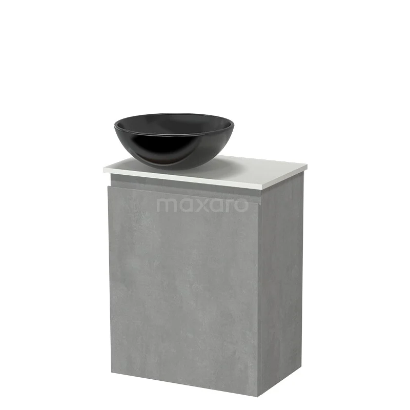 Modulo Pico WC-Möbel mit Aufsatzwaschbecken | 41 cm Hellgrauer Beton Grifflose Front Keramik-Aufsatzwaschbecken Solid Surface Waschtischplatte
