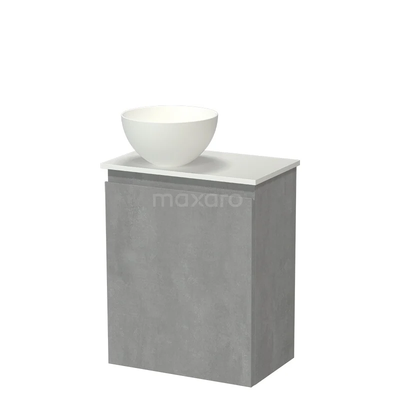 Modulo Pico WC-Möbel mit Aufsatzwaschbecken | 41 cm Hellgrauer Beton Grifflose Front Solid Surface Aufsatzwaschbecken Solid Surface Waschtischplatte