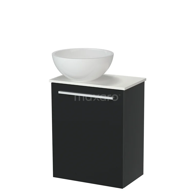 Modulo Pico WC-Möbel mit Aufsatzwaschbecken | 41 cm Matt Schwarz Glatte Front Mineralguss Aufsatzwaschbecken Solid Surface Waschbeckenplatte
