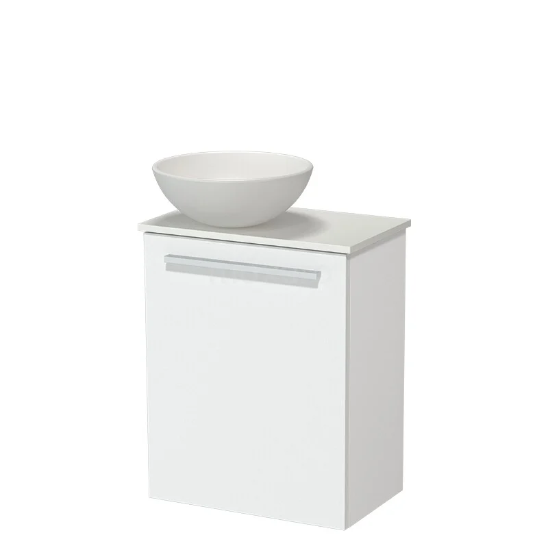 Modulo Pico WC-Möbel mit Aufsatzwaschbecken | 41 cm Matt Weiß Glatte Front Keramik Aufsatzwaschbecken Solid Surface Waschtischplatte