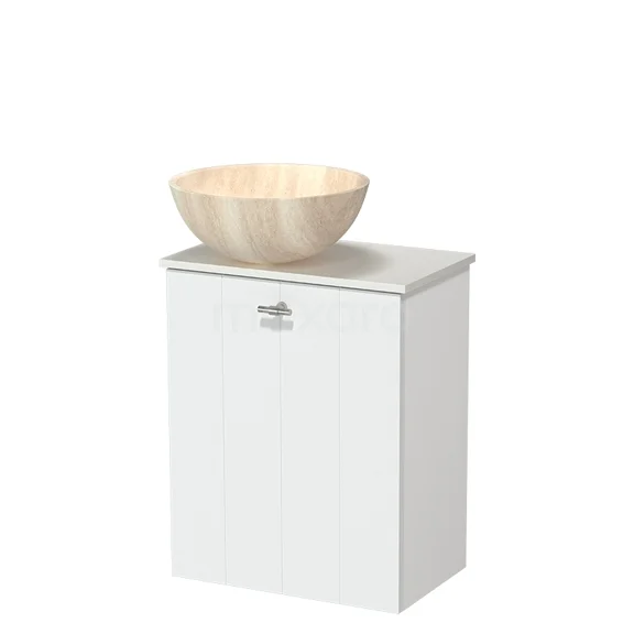 Modulo Pico WC-Möbel mit Aufsatzwaschbecken | 41 cm Matt Weiß Lamellen Front Waschtischbecken aus Naturstein Solid Surface